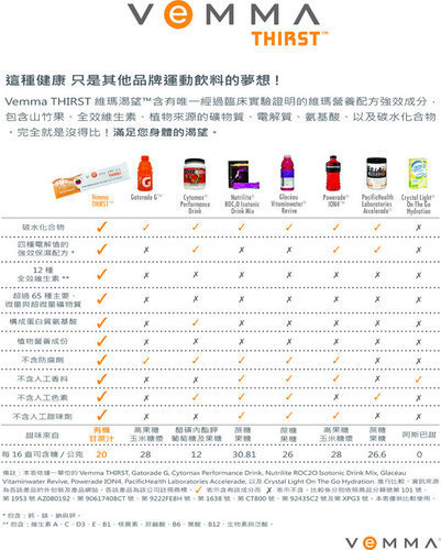 Thirst是粉末狀離子態的Vemma的主成分+碳水化合物、珍貴的複合氨基酸、電解質(複合氨基酸其中有一項L精氨酸,也是威而剛的主要成分,對心血管及婦科方面都有極大的幫助)